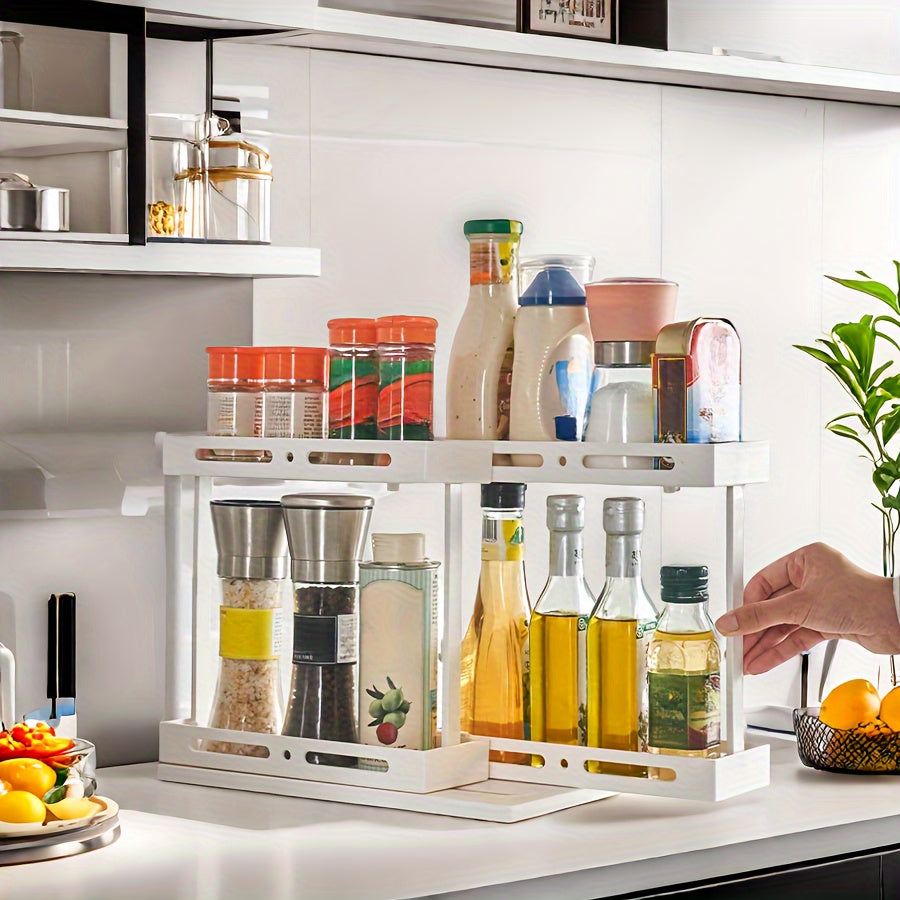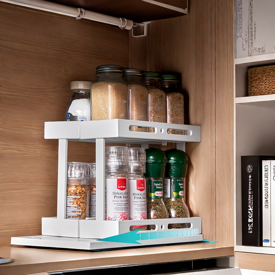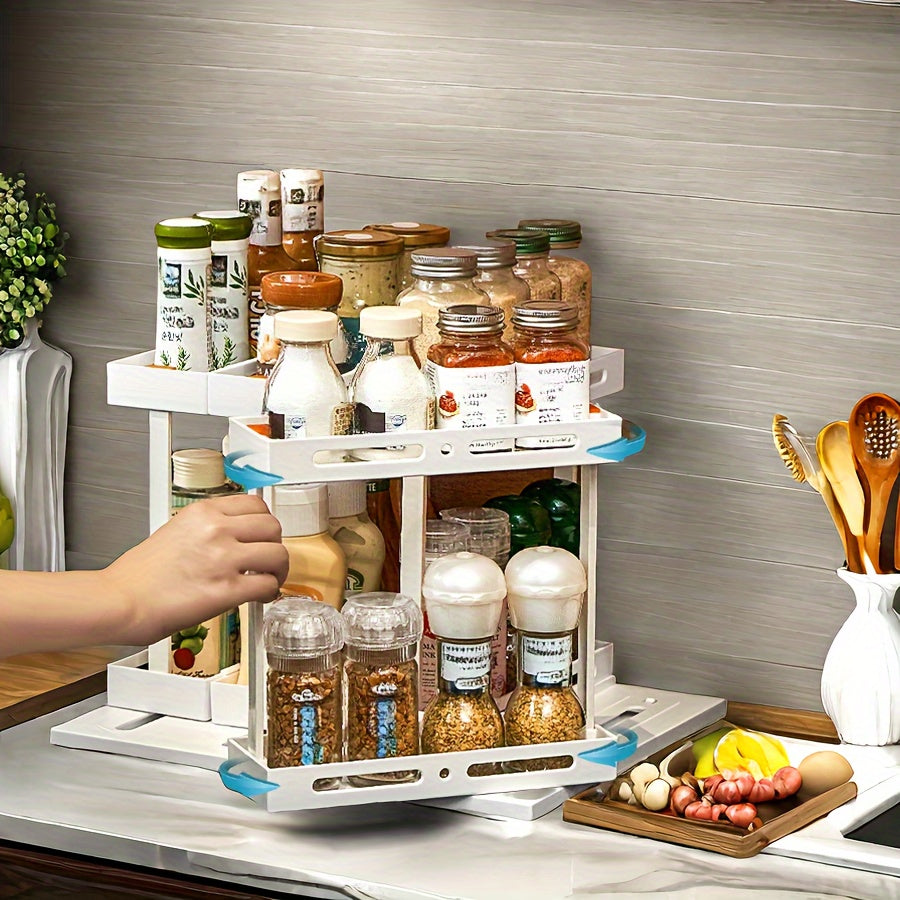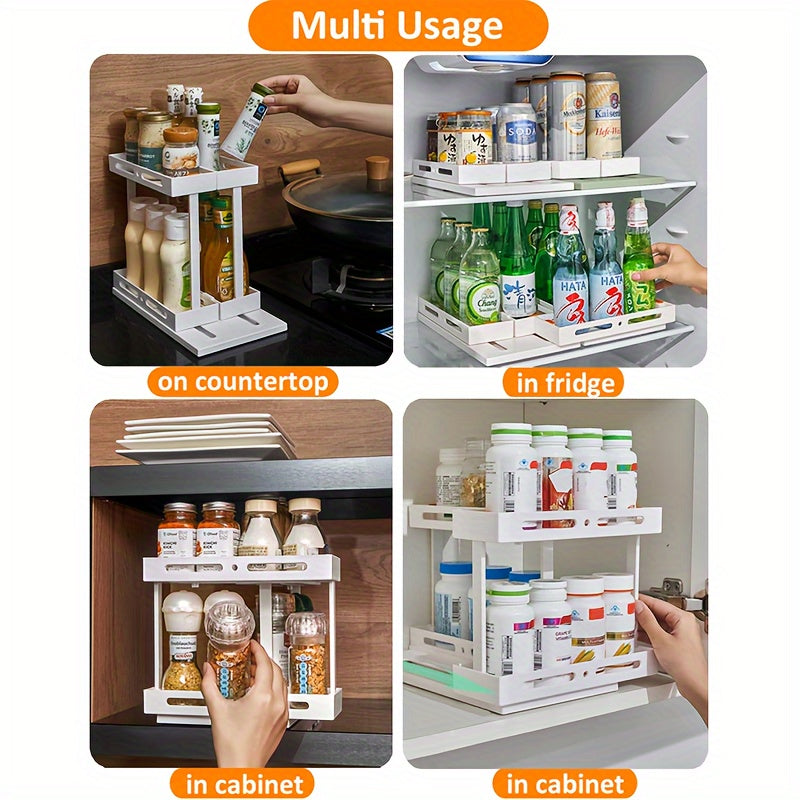 一件2层水槽下拉出式调料架,用于橱柜的拉出式香料架组织者,重型滑出式调味厨房组织者,橱柜组织者