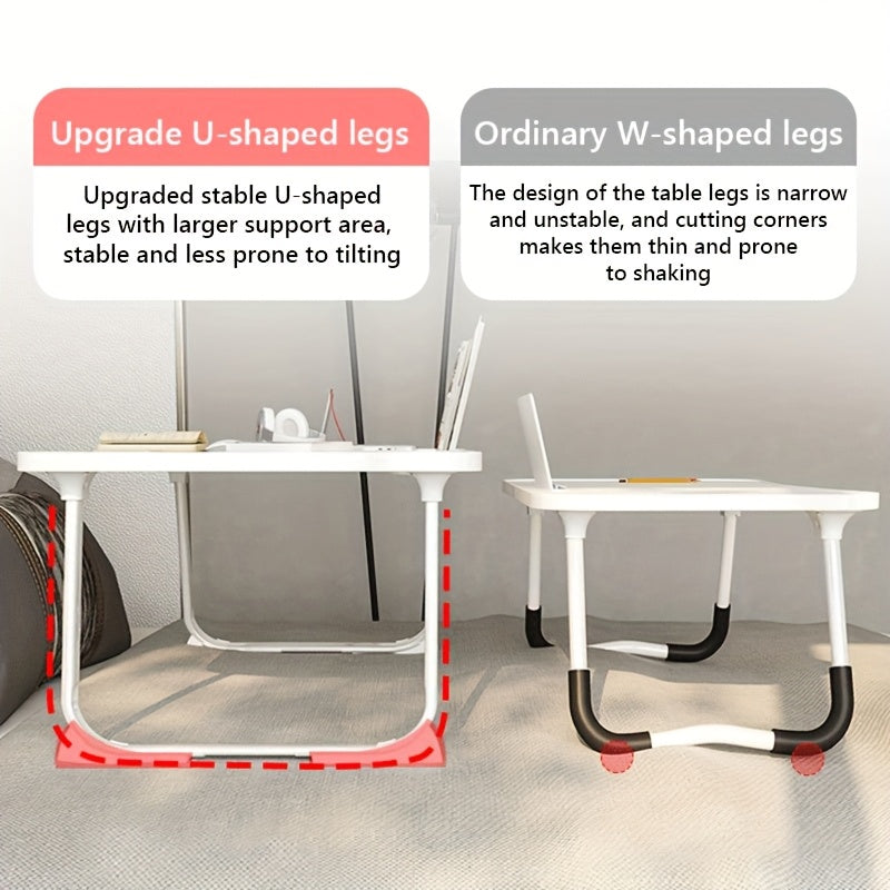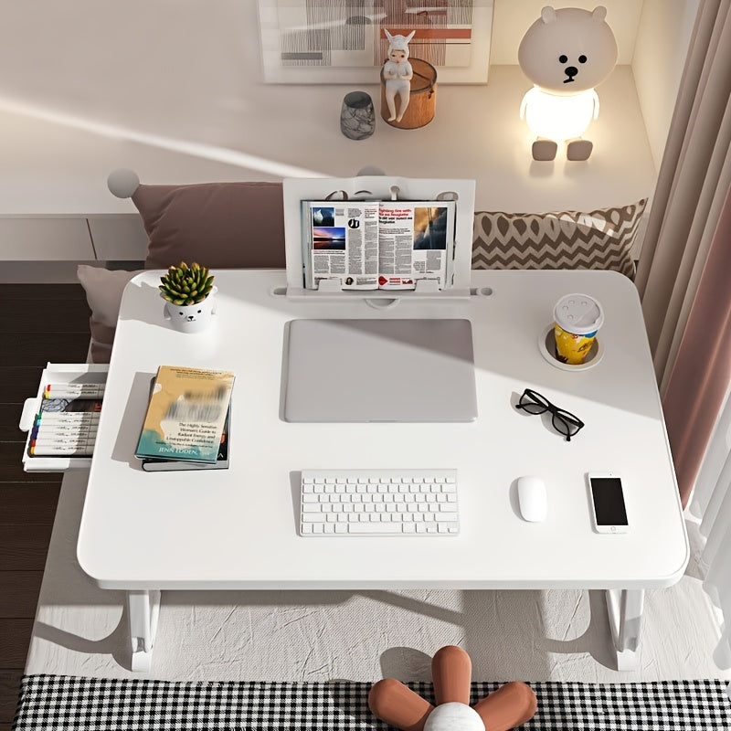 超便携笔记本电脑床头柜 - 带杯架和抽屉的多功能托盘支架 - 非常适合在床上、沙发、地板上吃饭、阅读和书写 - 稳定、耐用且可折叠