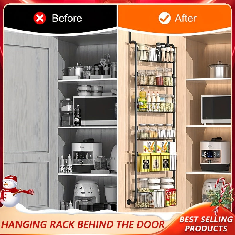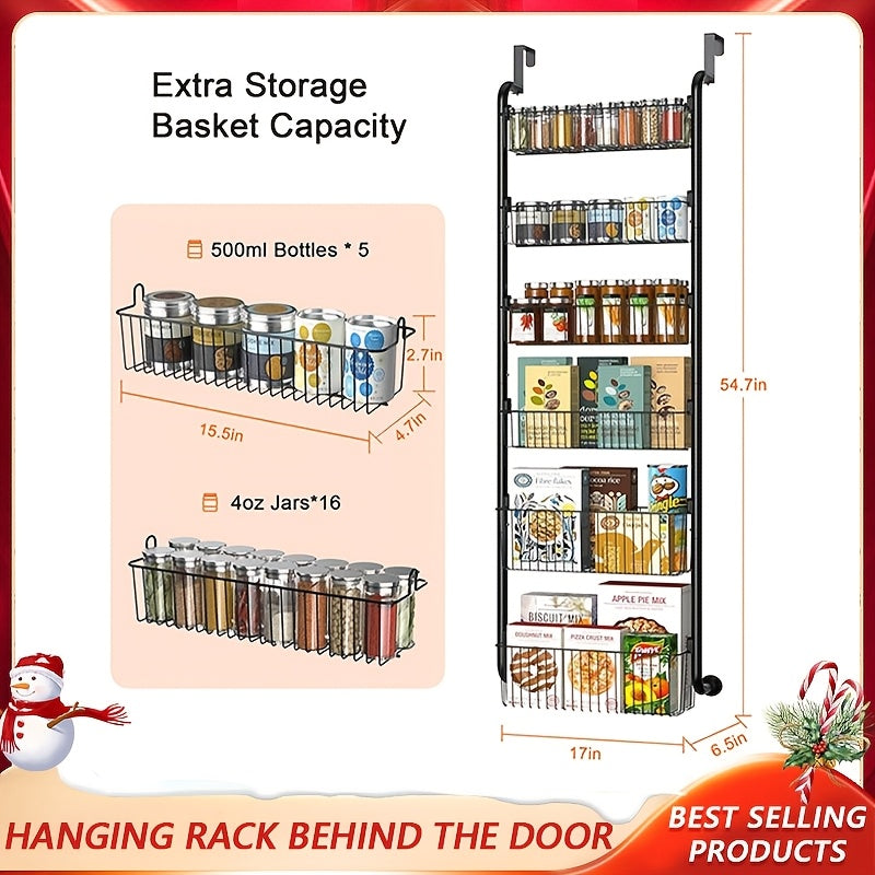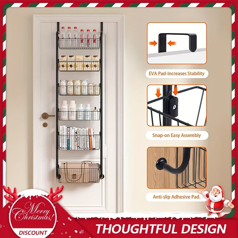 6层门后壁橱整理架,壁橱整理和收纳,黑色悬挂式壁架调味架调味品架,家居和厨房洗衣房浴室必需品篮子,箱子和容器,家庭和厨房洗衣房浴室必需品