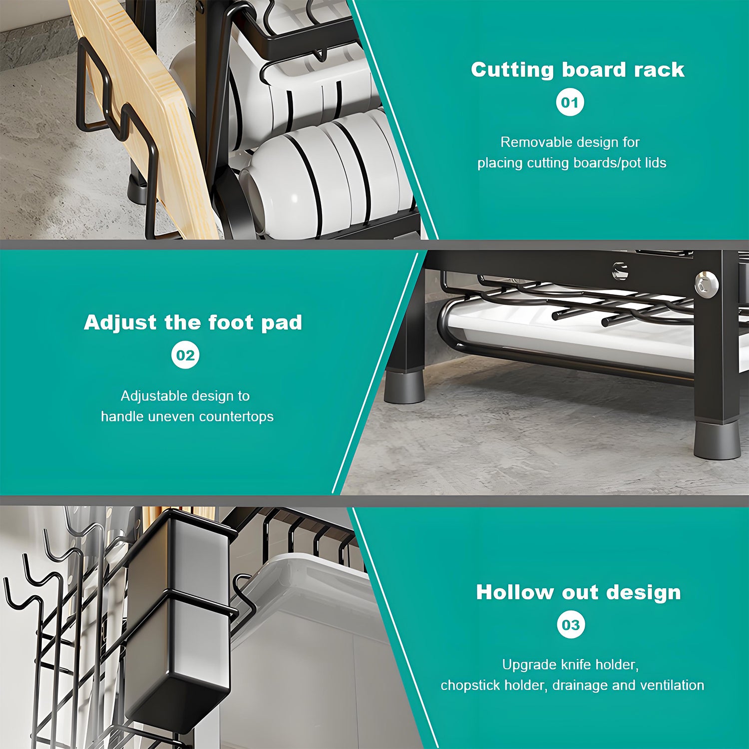 - 【Joyful Experience】:304 stainless steel - rustproof & wipe-clean,3-tier cascading design - dries all dishes at once,Removable drain tray - no more bending to empty.