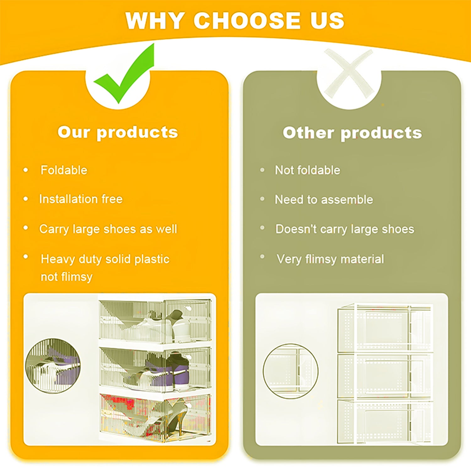 KRKZ 6-Tier Foldable Shoe Box Organizer - Clear Stackable Storage Box, Space-Saving for Closet/Bedroom/Dorm, Heavy Duty & Dustproof 15"x11"x7.5"