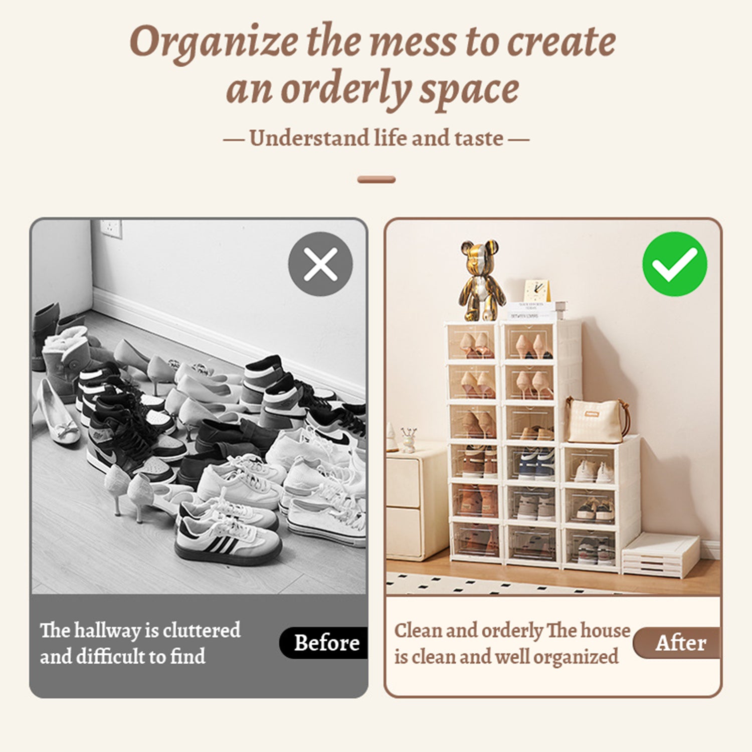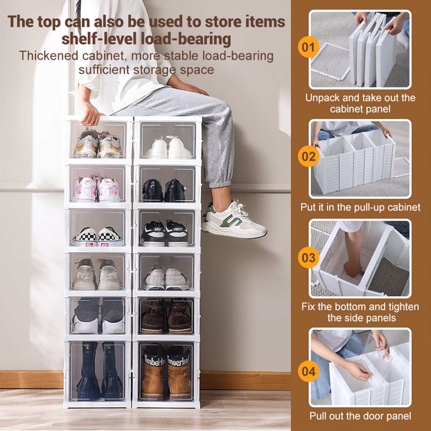 - ✅Convenient Front-Access Doors Features smooth-operating transparent doors that open 90 degrees for complete access, with secure closures that keep dust out. The clear doors maintain visibility while making your sneakers instantly accessible when needed.