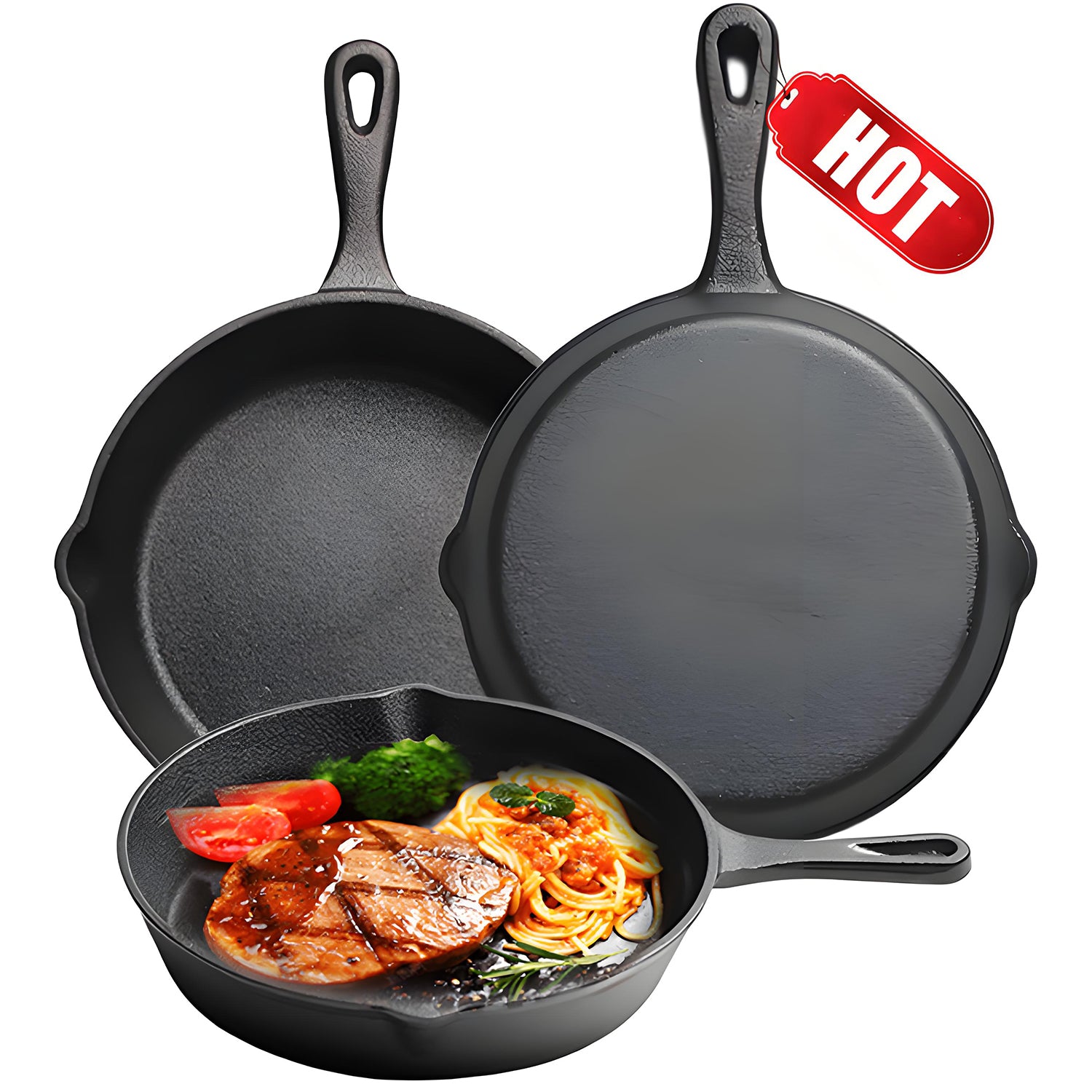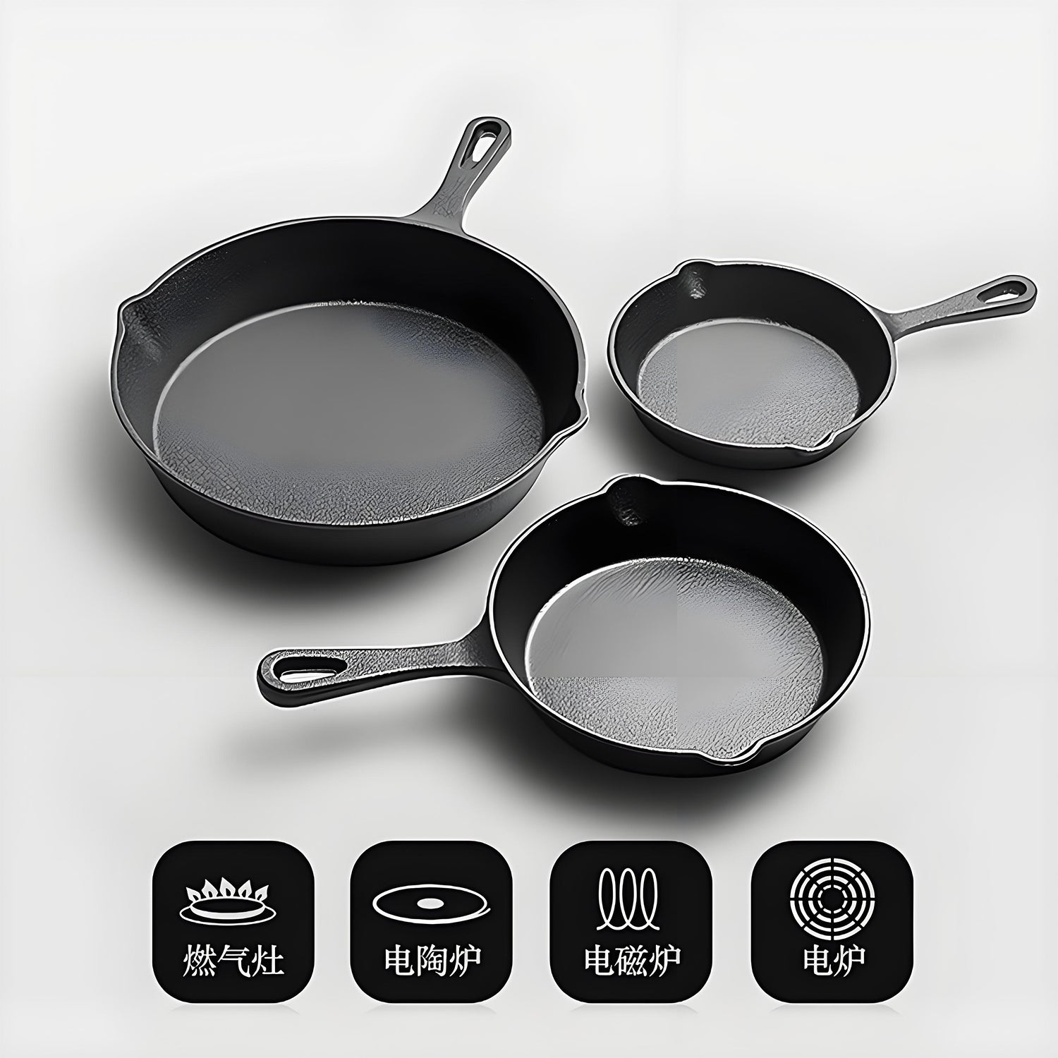 【High-Purity Cast Iron Material】Made from premium raw iron ore with no heavy metal additives, this high-density cast iron ensures even heat distribution and prevents localized burning.Unlike non-stick coatings that may peel over time, its natural, chemical-free surface provides a safer cooking experience.